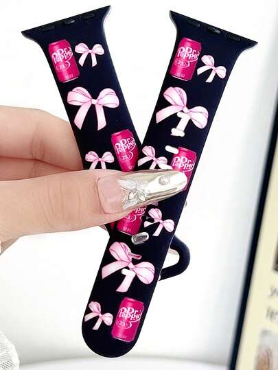 1 件蝴蝶结黑色优雅拉环蝴蝶结印花硅胶表带,兼容 表带 38mm 40mm 41mm 42mm 4mm 45mm 49mm(S10 42)毫米(S10 46)毫米,舒适可更换防水运动表带,兼容 Ultra/SE/10/9/8/7/6/5/4/3/2/1,运动时尚智能表带,女士表带,精致女士时尚手表配件,智能表带/表带,情人节母亲节礼物,时尚配饰 - 黑色 - 查看 1