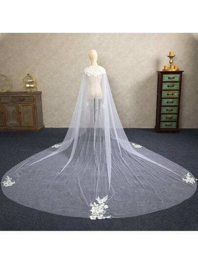 1 件新娘披肩配饰,欧式刺绣水钻蕾丝花边,新娘面纱披肩秋季女士服装 - 白色 - 查看 1