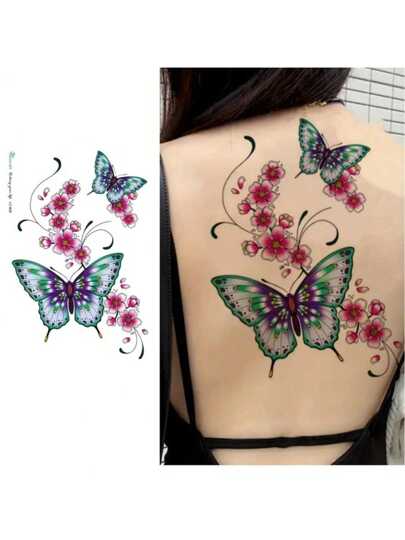 1 件蝴蝶和花汁纹身贴纸,半永久植物手臂纹身 - 彩色 - 查看 1