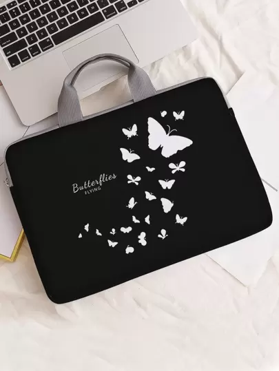 1入組蝴蝶和字母圖案電腦包 - 黑與白 - 查看 1