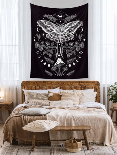 1 件蝴蝶和蘑菇印花挂毯,现代布艺壁毯,适用于家居墙壁装饰 - 黑與白 - 查看 6