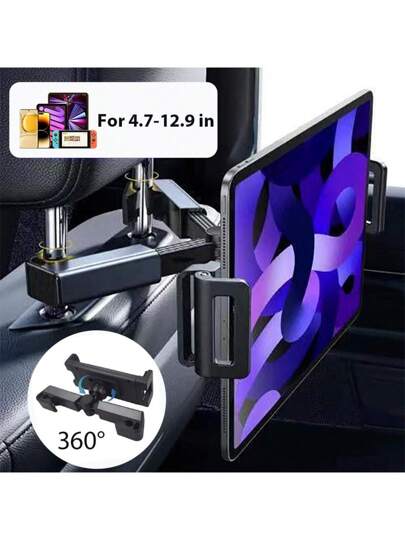 1个车载头枕可折叠手机支架,可旋转调节伸缩自动座椅平板电脑支架,适用于4.7-12.9英寸设备 - 黑色 - 查看 1