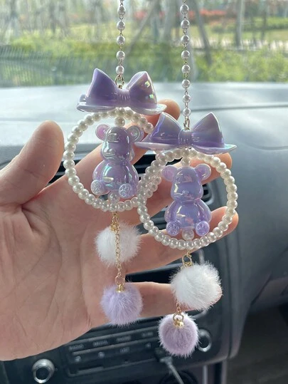 1入組汽車掛件,車內熊掛件,後視鏡掛件 - 紫色 - 查看 11