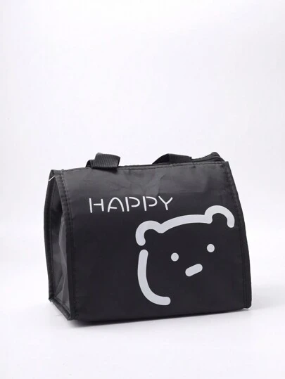 1入組卡通熊圖案便當袋 - 黑色 - 查看 1