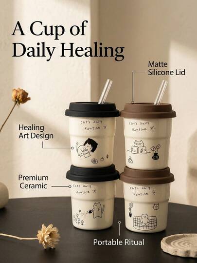 顏色: 單杯+矽膠蓋(防漏) | 尺寸: 打禪(棕色矽膠蓋)+吸管