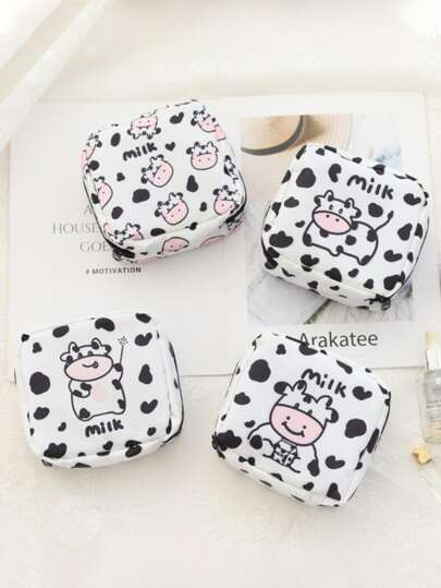 1入組卡通奶牛圖案隨機衛生巾收納袋 - 彩色 - 查看 1
