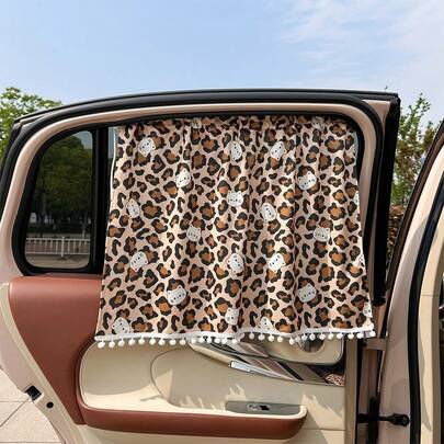 1件卡通豹纹汽车窗帘,遮阳隔热,全遮光,轨道式遮阳板
