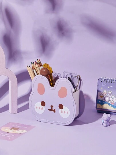 1入動漫兔筆筒,適用於學生文具組織,儲藏化妝刷,桌面組織 - 紫色 - 查看 10