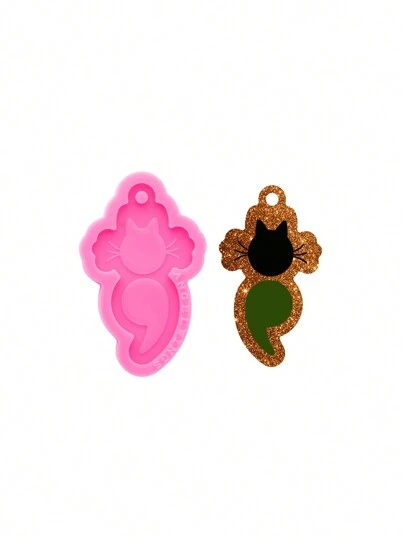 1入組分號貓矽膠樹脂環氧模具,用於diy樹脂鑄造工藝,珠寶製作用品,鑰匙扣模具 - 粉色 - 查看 1