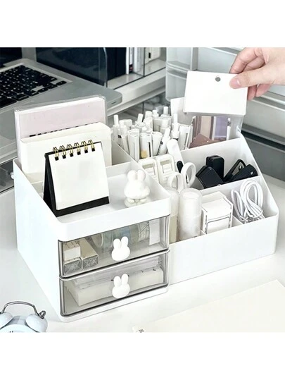 1 件迷人兔子主题桌面收纳盒,带 2 个透明抽屉 - 耐用塑料收纳盒,用于办公用品和杂物,非常适合家庭和办公室装饰、返校用品、节日礼物、圣诞礼物、返校、学校用品、铅笔盒、铅笔袋、书包 - 彩色 - 查看 10