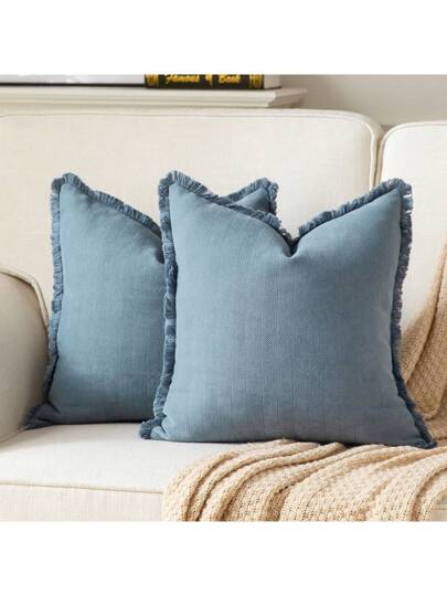 1 件雪尼尔流苏装饰抱枕套,简约实用,多功能 - 藍色 - 查看 1