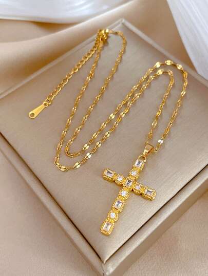 1 件别致的全氧化锆吊坠项链,时尚,自己佩戴或送给朋友和家人爱人的精美礼物(无盒子) - 金黃色 - 查看 1