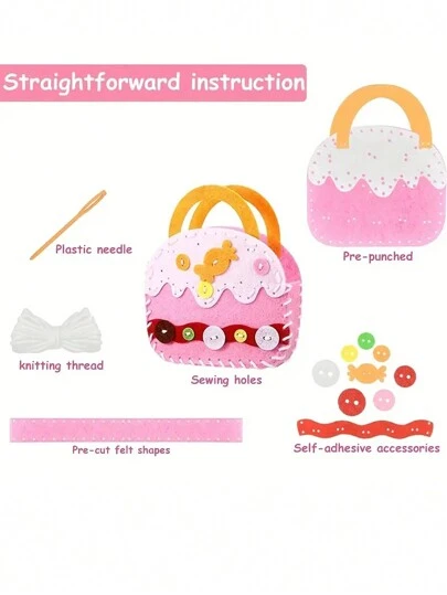 1個兒童手工製袋縫紉包,包含安全縫針和毛氈布,適用於diy手工藝品和縫紉,是孩子、女孩、男孩製作自己的書包的好禮物