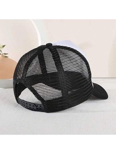 1 件裝兒童遮陽透氣網狀棒球帽椰子樹圖案戶外運動 - 黑與白 - 查看 1
