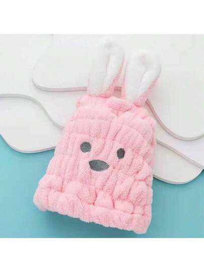 1件兒童沐浴帽,吸水速干毛巾頭巾,超水吸收力,卡通兔子造型,可愛俏皮,適合女孩使用 - 粉色 - 查看 1
