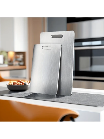 1 件,砧板,不锈钢切菜板,砧板,奶酪熟食板,肉类熟食板,奶酪,面包,蔬菜和水果,家庭宿舍切菜板,厨房小工具,家庭礼物销售 - 銀色 - 查看 5