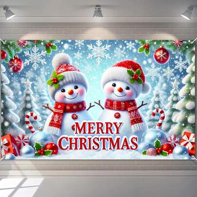 1 件圣诞背景横幅,雪人,冬季仙境与拐杖糖,节日派对照片背景,室内/室外 - 彩色 - 查看 17