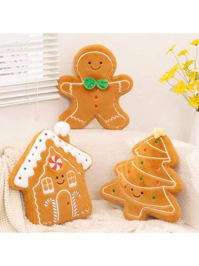 1 件圣诞节家庭圣诞树装饰、姜饼人和房子家居装饰抱枕 - 彩色 - 查看 1