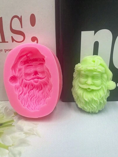 1 件圣诞帽和圣诞老人形状硅胶模具,适用于饼干、巧克力、软糖蛋糕装饰工具 - 粉色 - 查看 1