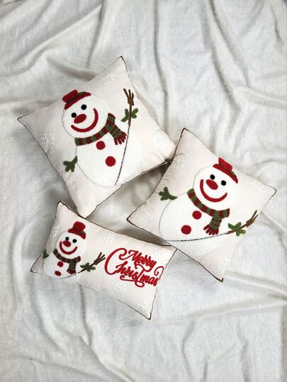 1入組聖誕雪人刺繡靠墊套不附帶墊芯 - 彩色 - 查看 1
