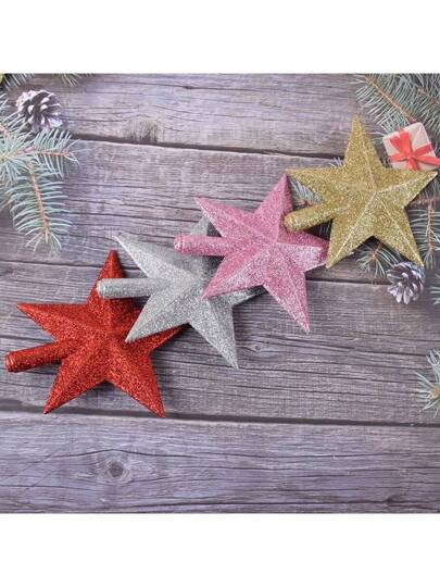1入組聖誕節樹頂星聖誕節創意裝飾黏性三維五角星聖誕樹 - 粉色 - 查看 1