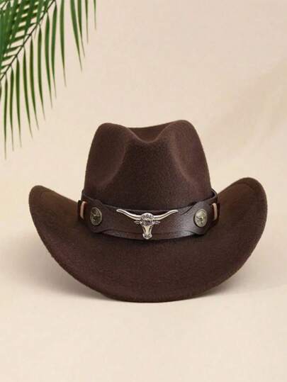 1 件经典复古牛仔帽,配有可拆卸棕色皮革带装饰,适合户外穿着 - 公牛棕皮禮帽 - 查看 1