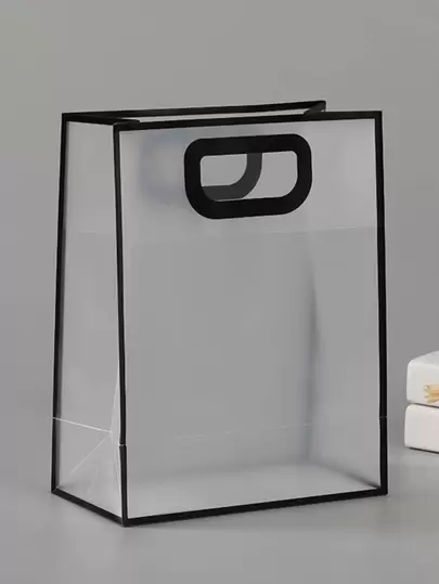 1 件透明礼品袋,简约镂空手柄设计 PVC 礼品包装袋,适合派对 - 黑色 - 查看 1