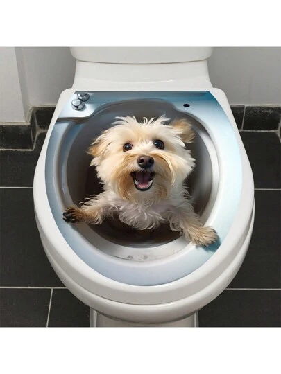 1 件創意 3d 黏性廁所貼花帶狗設計,防水防油,適合浴室使用