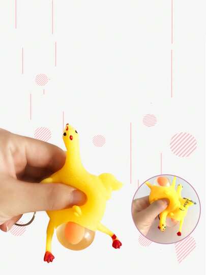 1入組創意&搞笑濕軟雞造型鑰匙圈帶功能,惡作劇玩具適用於減壓 - 黃色 - 查看 1
