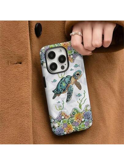 海龟图案单件装创意热转印三合一全包手机壳,兼容 16 Pro Max/16/16 Pro/16 Plus/15/15 Pro Max/15 Pro/11/12/13/14 Pro Max/11 Pro/11 Pro Max/12 Pro/12 Pro Max/13 Pro/13 Pro Max/14 Pro/14 Pro Max - 彩色 - 查看 1