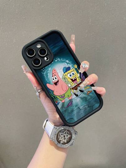 SPONGEBOB 1个创意水下海绵宝宝海星彩绘打孔防摔手机壳,兼容三星/ 17/16/15/14/13/12/11 Pro Max/12 Pro/14 Plus 及其他型号 - 彩色 - 查看 1