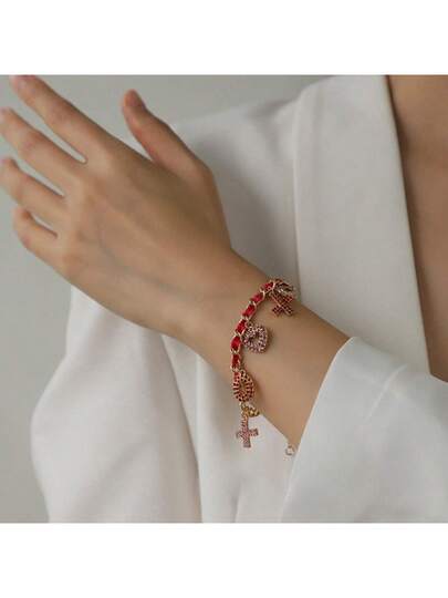 1件创意情人节主题可叠戴奢华手链,饰有心形、水滴等设计,手链的链条部分也充满了个性化和时尚感。