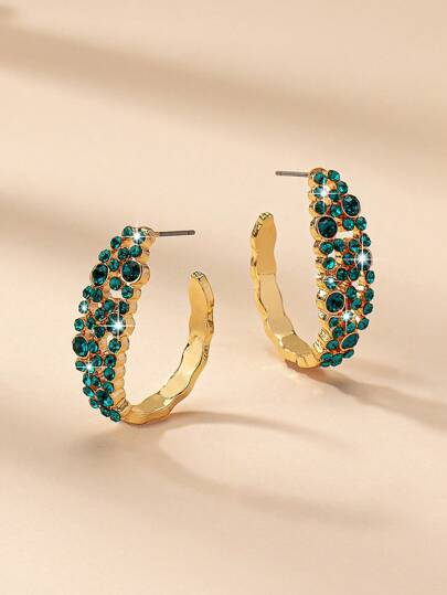 1 件跨境流行绿色全水钻和祖母绿和 U 形个性化耳环 - 綠色 - 查看 1
