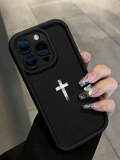 1 件十字图案黑色喷砂手机壳,适用于苹果手机 - 彩色 - 查看 1