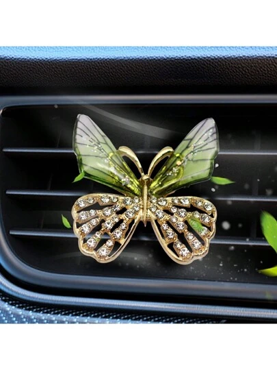 1入組水晶鑽飾蝴蝶車用空氣清新夾,可愛汽車內飾,男女皆宜禮物(藍色/綠色) - 隨機 - 綠色 - 查看 1