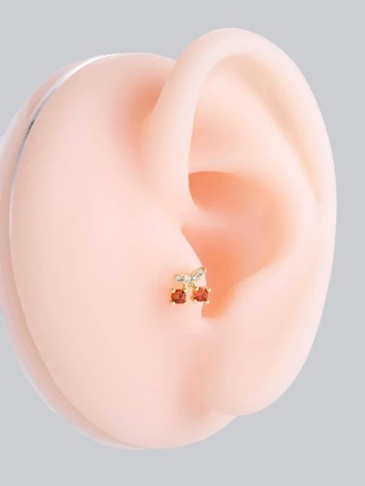 1入組方晶鋯石櫻桃設計耳釘 - 金黃色 - 查看 1