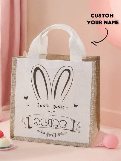 1 件带有兔耳图案的定制手提包,采用您自己的设计进行个性化设计,是送给儿童和青少年的绝佳礼物,可以印上您的名字或朋友/兄弟姐妹的名字 - 彩色 - 查看 1