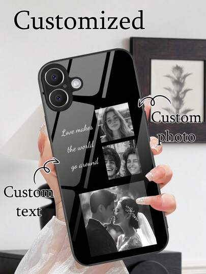1个定制黑白三图/文字防震高清玻璃手机壳,兼容 16/16 Pro/16 Plus/16 Pro Max/17 Pro Max/17 Air、S25 Ultra、红米、一加等机型,2025万圣节配件,手机及配件 - 黑色 - 查看 4