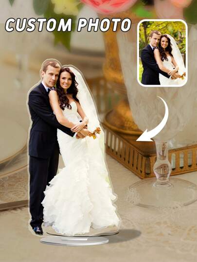 1 件定制个性化婚礼照片亚克力小雕像支架、定制新郎新娘亚克力小雕像、定制婚礼情侣亚克力展示架、可定制水晶艺术相框(带底座)、独特的婚礼纪念品 - 彩色 - 查看 1