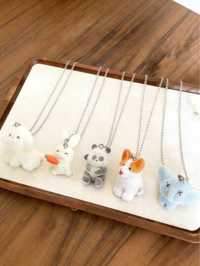 1件可爱3D植绒树脂小狗、熊猫、大象吊坠项链,精致简约,百搭休闲风配饰,适合日常佩戴、约会、生日等场合,也是送给女朋友的理想礼物。 - 彩色 - 查看 5