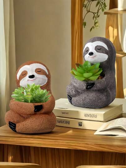 1 件可爱卡通抱抱树懒花盆,适用于花园庭院用品、多肉盆栽树脂摆件、家居桌面装饰,非常适合婚礼艺术装饰、母亲节礼物 - 彩色 - 查看 10