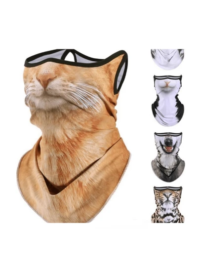 1 件装可爱狗狗猫咪印花面罩男士夏季户外旅行防晒颈罩 - 動物面罩 - 查看 1