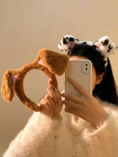 1个可爱毛绒小狗耳朵发箍,女士口罩清洗发箍,趣味发饰发圈,发带,发箍头饰 - 彩色 - 查看 6