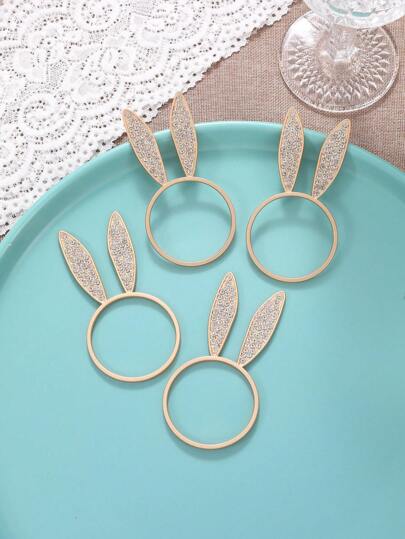 1個可愛的兔耳朵餐巾環,配有金色和鑽石裝飾,適用於家庭廚房、餐廳、野餐、露營、節慶慶祝、婚禮、派對、生日、酒店、農家、家庭用餐桌面裝飾,適用於復活節 - 金色 - 查看 3
