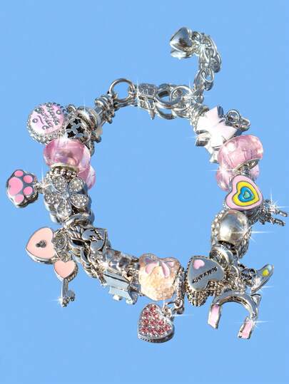 1 件可爱机器人吊饰手链、心形棒棒糖 DIY 手链、花卉手链、心形钥匙吊坠手链、可爱风格手链 - 粉色 - 查看 9