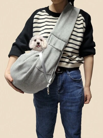 1 件深灰色运动衫面料抽绳袋,带夹子,小型宠物户外吊带背带 - 深灰色 - 查看 1