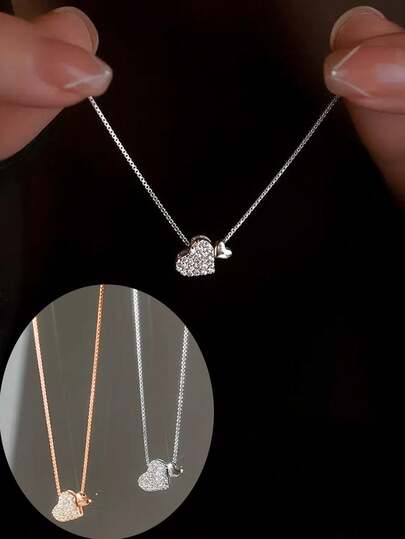 1件精致双心吊坠项链,简约设计,女士精致锁骨链 - 彩色 - 查看 1