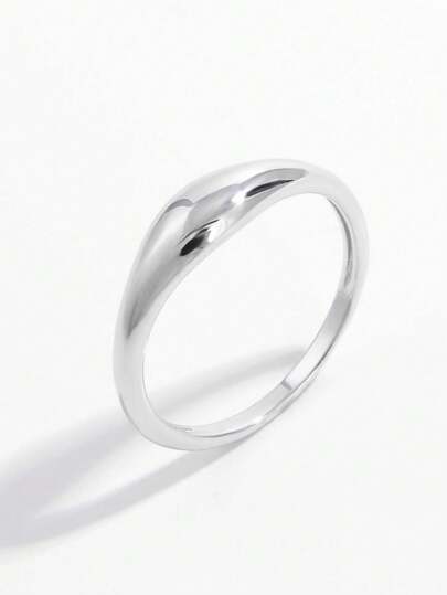 1枚精致简约优雅可爱经典925银抛光戒指,适合女性约会和表达个性礼物 - 銀色 - 查看 1