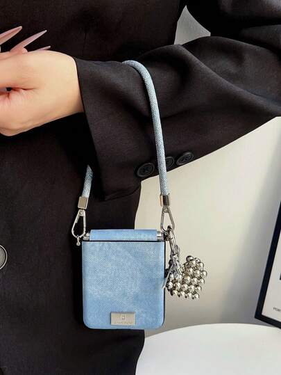 钥匙扣、挂绳 1 件装牛仔布侧扣及手持式手机壳,兼容三星 Galaxy Z Flip3、Flip4、Flip5、Flip6、Flip7FE - 彩色 - 查看 1