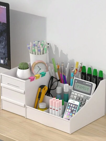 1個桌面抽屜式3層收納盒,適用於學生,組織文具收納盒 - 白色 - 查看 5